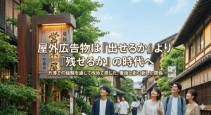 ―― 万博での経験を通じて改めて感じた、看板と街の新しい関係 ―― はじめに 「看板に許可がいる」ことを、知らないまま出している人は少なくありません 店舗を開業するとき、ロゴを作り、内装を整え、看板を設置する――。 多く […]