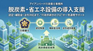 「地域脱炭素」時代の設備投資支援 ゼロカーボンシティ表明自治体の補助金・条例調査から申請代理まで。「行政手続きのプロ」が一気通貫でサポートします。 「脱炭素なんて、一部の大企業の話だろう」 そう思っていませんか? 環境省 […]
